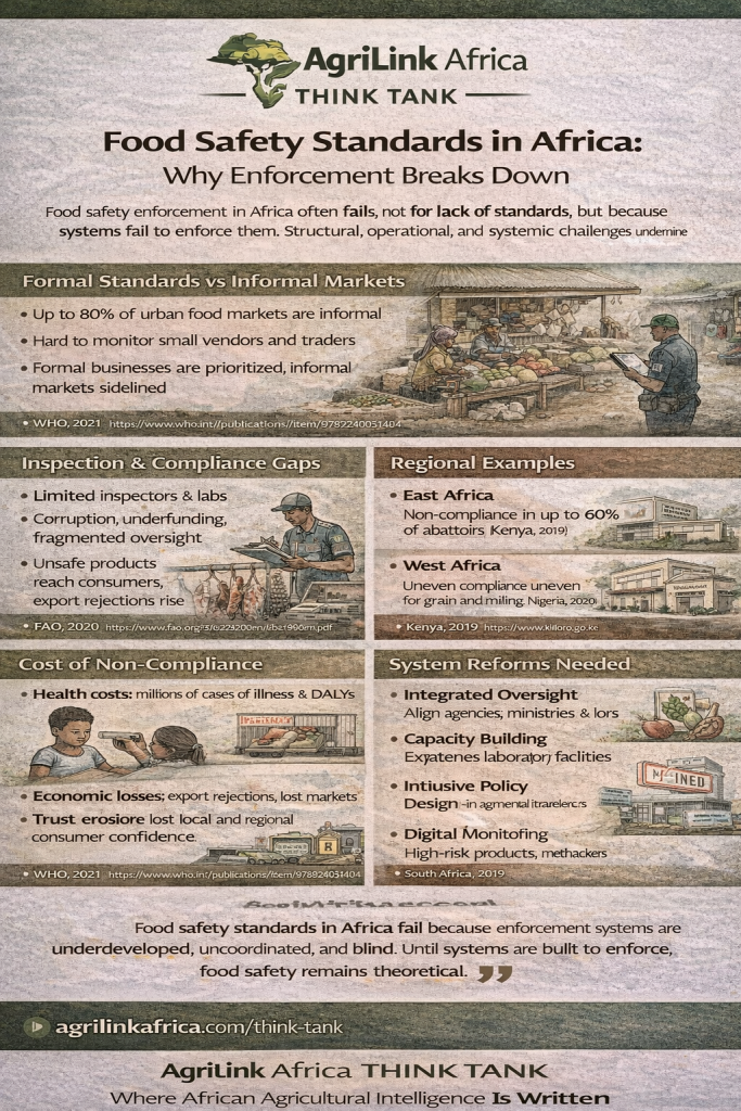 Food safety enforcement in Africa fails not because standards do not exist — but because systems, resources, and implementation structures are insufficient.